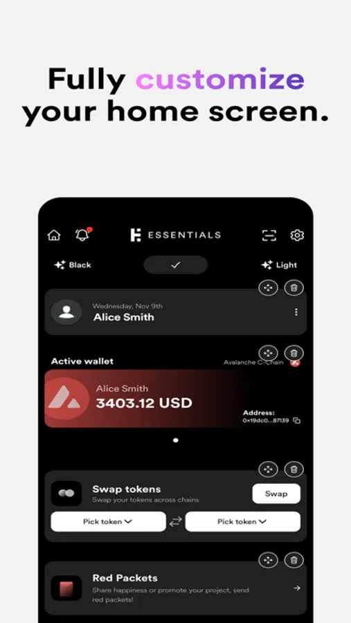 - All of this with one of the best user interfaces on the market, with a fully customizable home screen, one swipe to switch among your wallets, one mnemonic for instant access to all networks and much more.