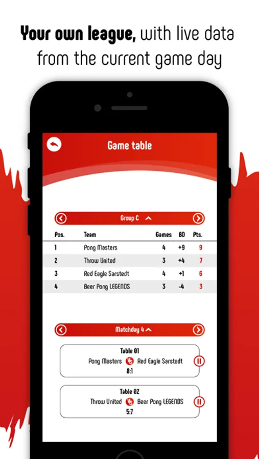 With this exceptional app we are revolutionising the Cup throwing game. The app offers you to create single games and tournaments quickly and easily. No annoying scraps of paper anymore. The teams are assigned by lot digitally and with the tournament schedule on your mobile phone you are always up to date.