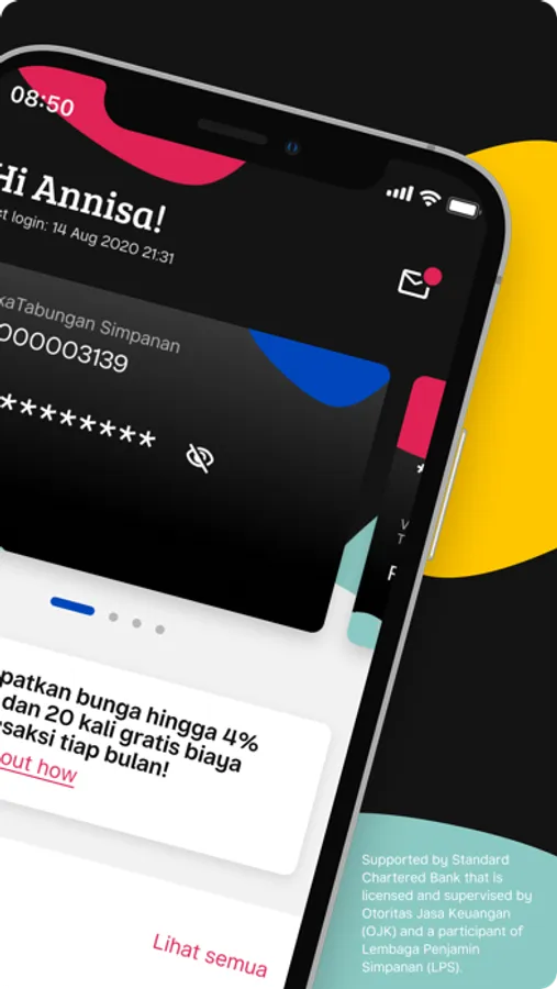 BukaTabungan offers banking products and services supported by Standard Chartered Bank. Standard Chartered Bank is licensed and supervised by the Financial Services Authority (OJK) and is a member of the Deposit Insurance Corporation (LPS).