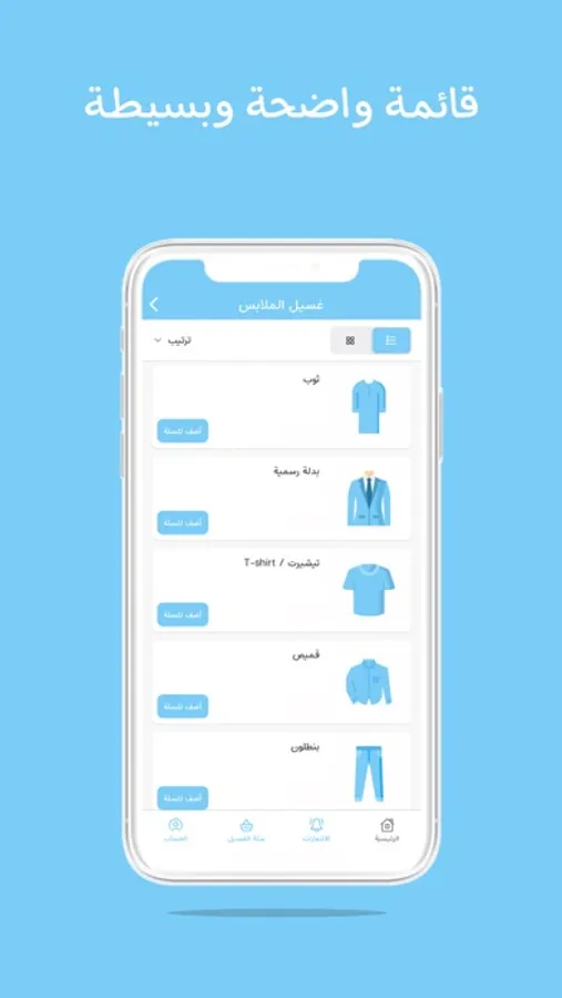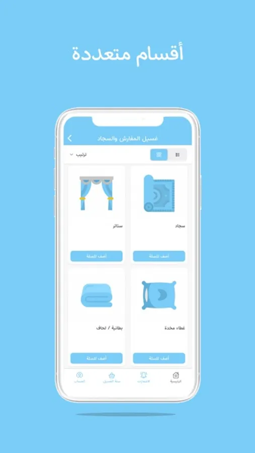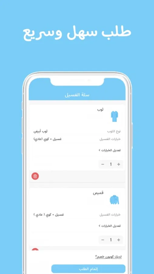 مغسلة إلكترونية ، توفر خدمة استلام وغسيل وتوصيل الملابس والمفارش والسجاد من وإلى الباب