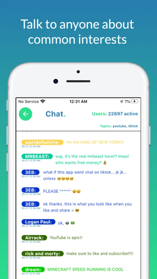 Topic Based Chat lets you talk to anyone with the same chat topic. First,
