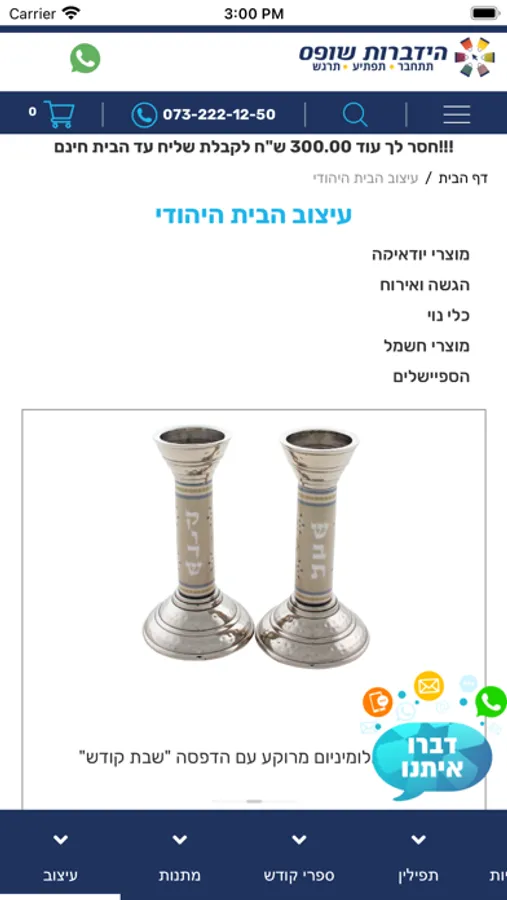 מגוון רחב של מוצרי יודאיקה, יהדות ומתנות