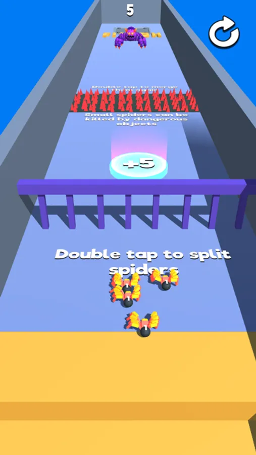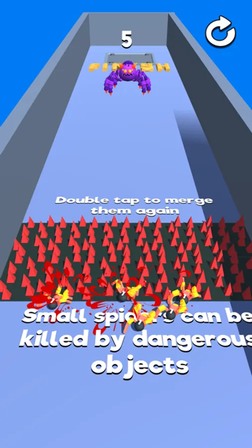 Collect spiders, merge them, split them, make strategies, defeat all the enemies.