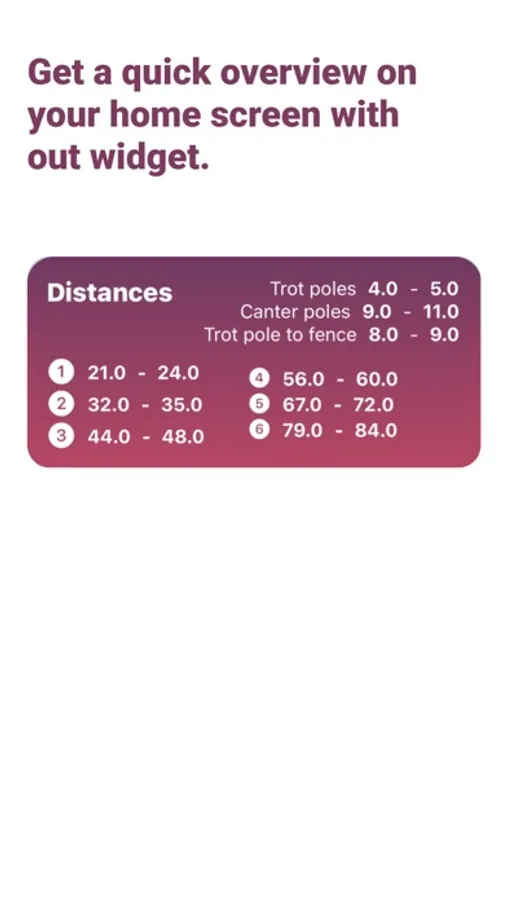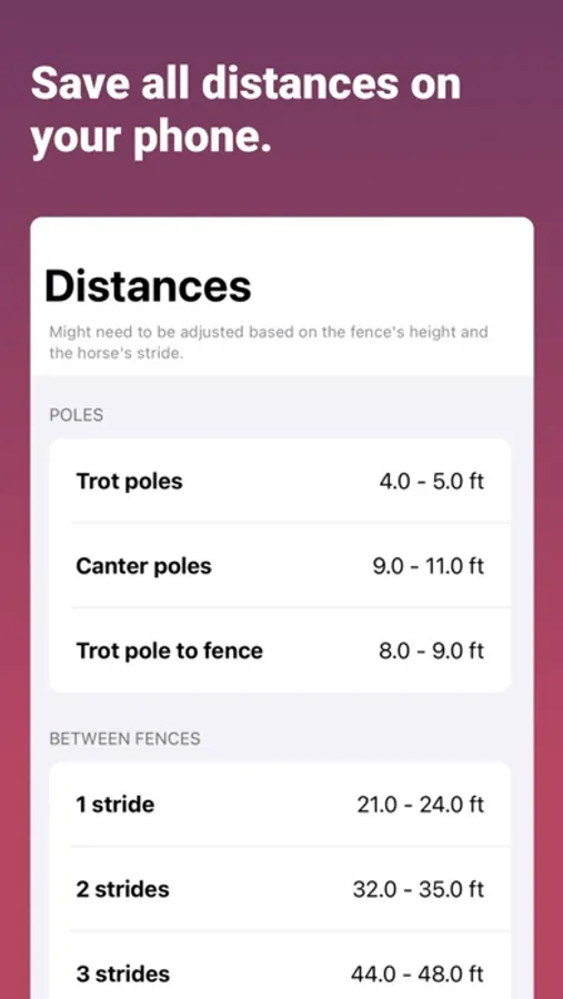 Approximate distances in feet when building cavaletti and jumping at home, may need to be adjusted if you jump low or high and based on your horse's stride.