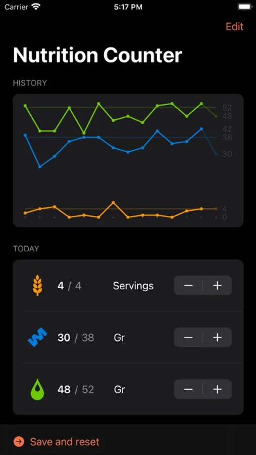 - Set your daily goals by simply entering new values in the main screen to get feedback when you're over the limit