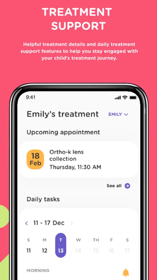 Treatment support information and daily notification features to help you stay engaged on your myopia management journey
