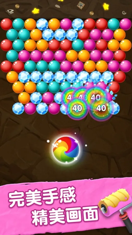 三个同色泡泡相连就能消除,左右滑动就能发射,墙壁还支持反弹哦~