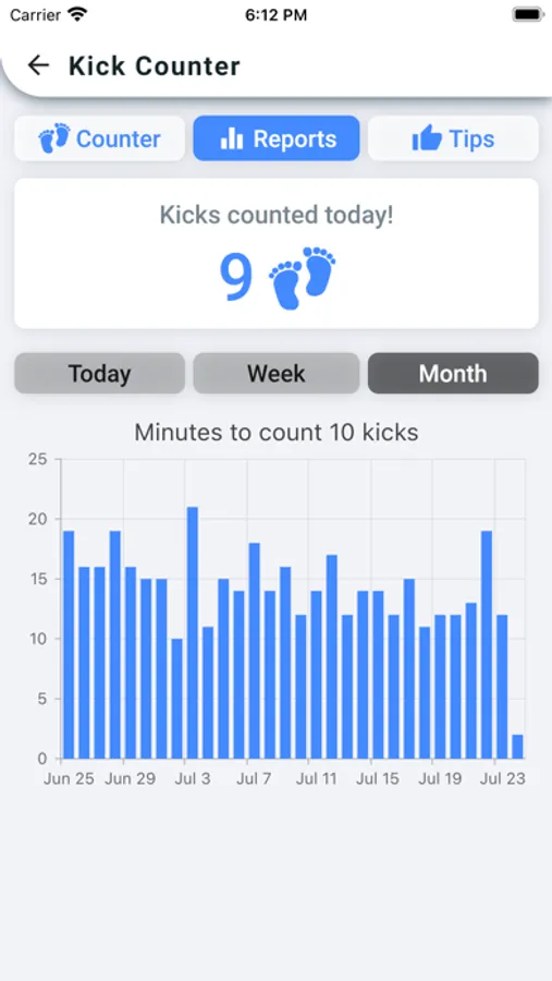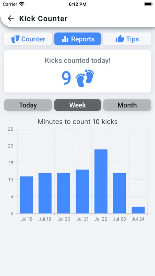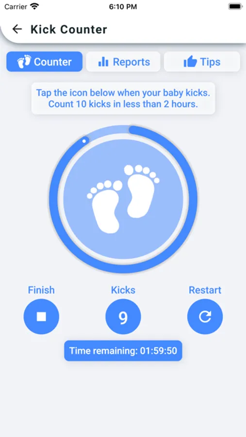 • Easily count kicks every day. Just tap the screen every time you feel a movement.