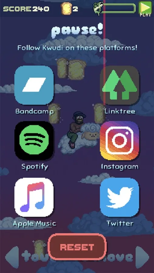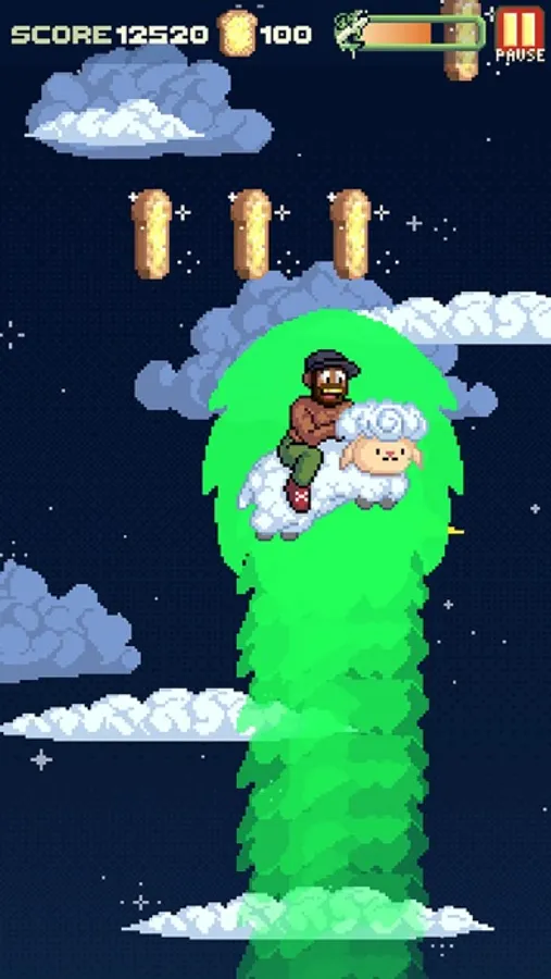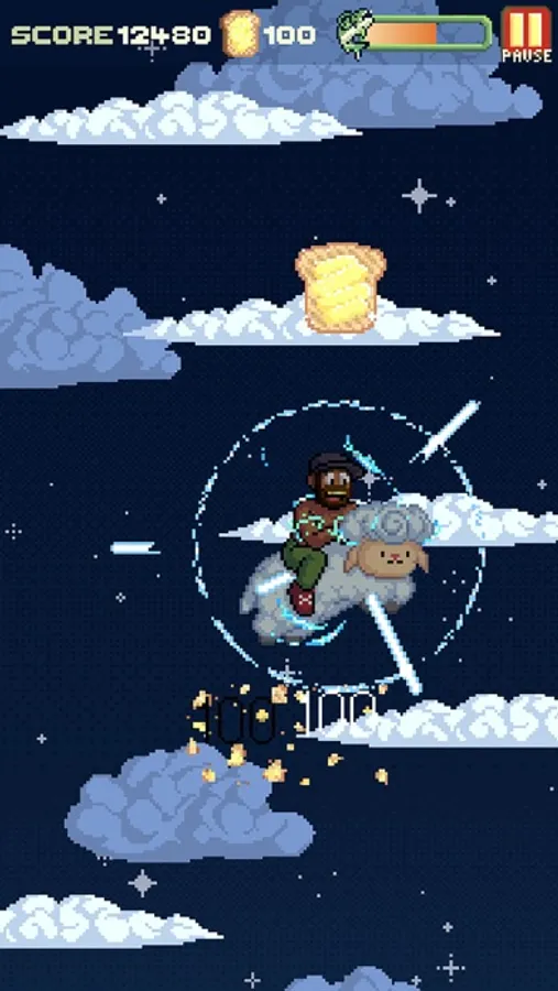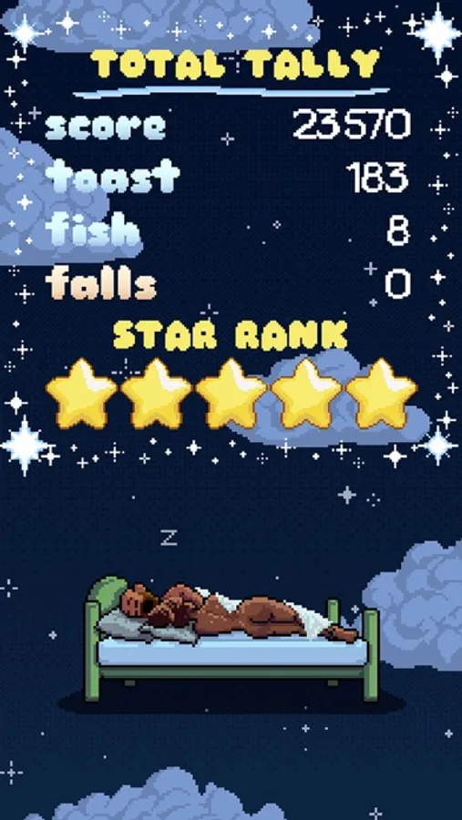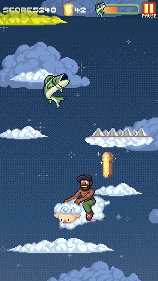 Bounce on a golden cloud and a bass fish jumps out. Catch them to fill your fish meter and soar even higher!