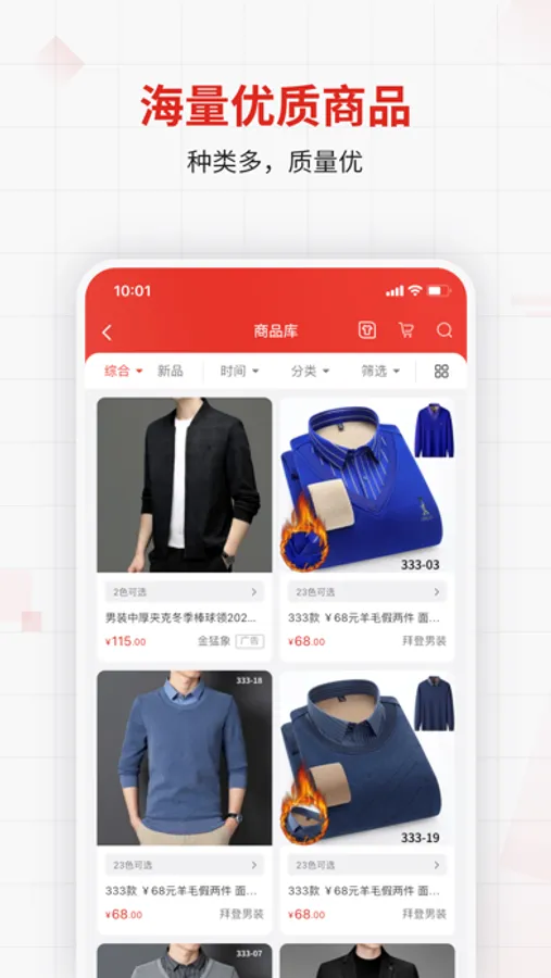 【源头低价】优批之家涵盖各类服装鞋包品类,直接对接一手货源,价格更低,网店利润空间更大。