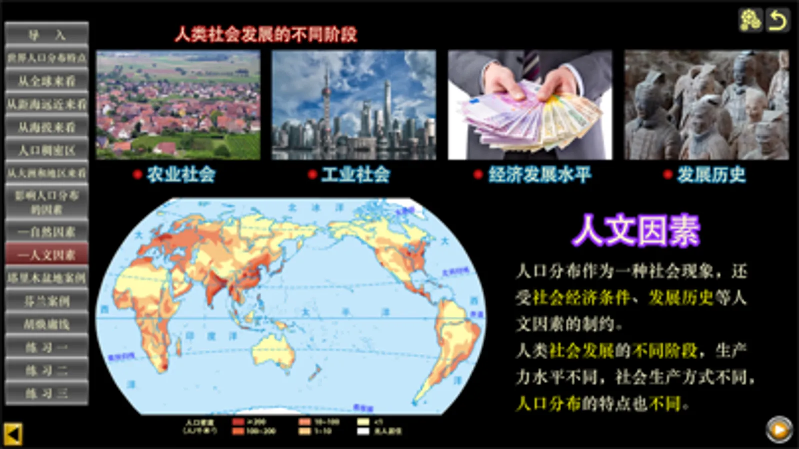 高中地理必修二,用于高中地理教学使用的教育信息化产品。本套软件利用人机交互的新技术手段,将形象、生动、立体的多媒体技术与教学内容深度结合,以满足日常课堂教学需求为目的,为任课教师提供全面、丰富的教学内容和素材,辅助老师完善教学过程,提高教学效果。