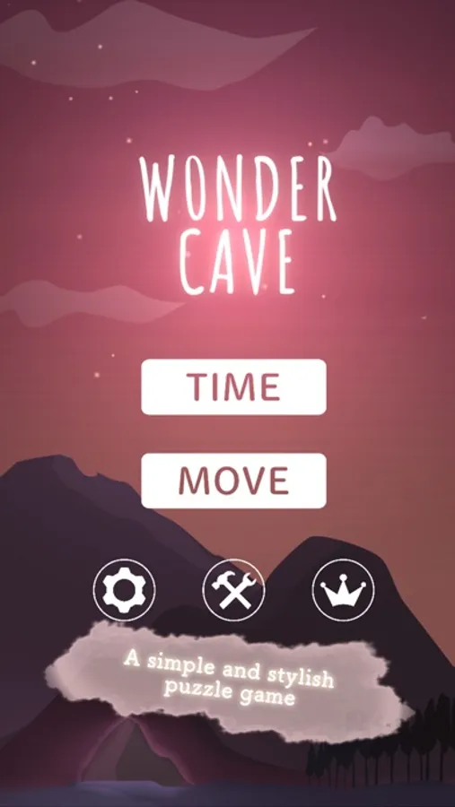 From the left, the three buttons on the title screen are sound settings, graphic settings, and stats.