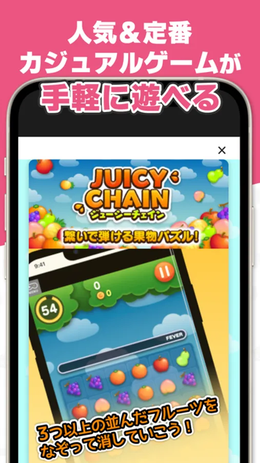 簡単な操作で誰でもすぐに楽しめるパズルゲームがあらかじめ用意されており、インストール後すぐに遊ぶことができます。