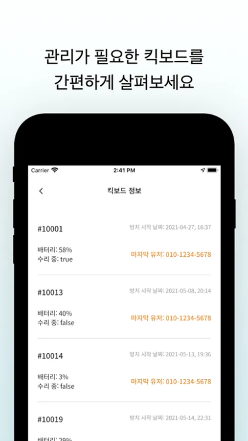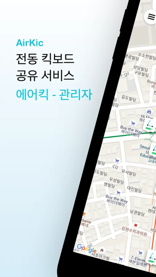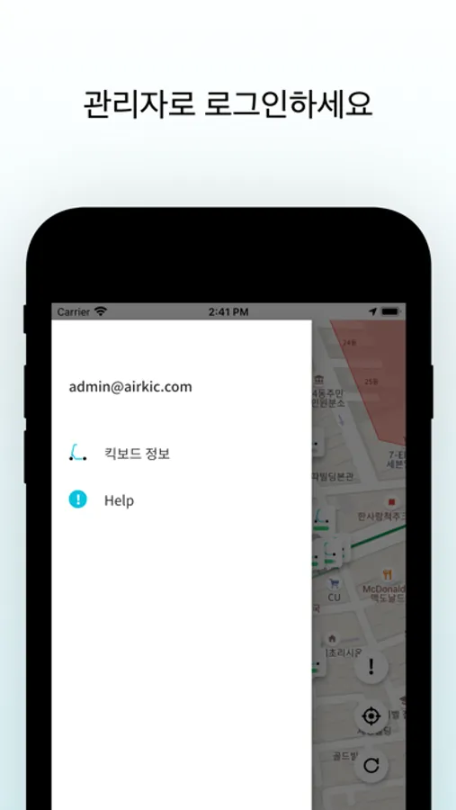 전동킥보드 공유 서비스 에어킥의 관리자용 어플입니다.