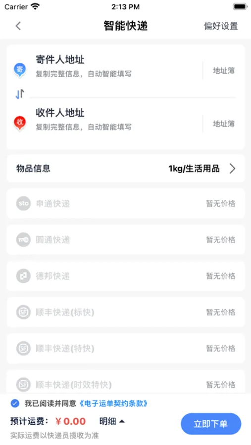 管理收寄件人地址,智能识别地址,1分钟快速下单!