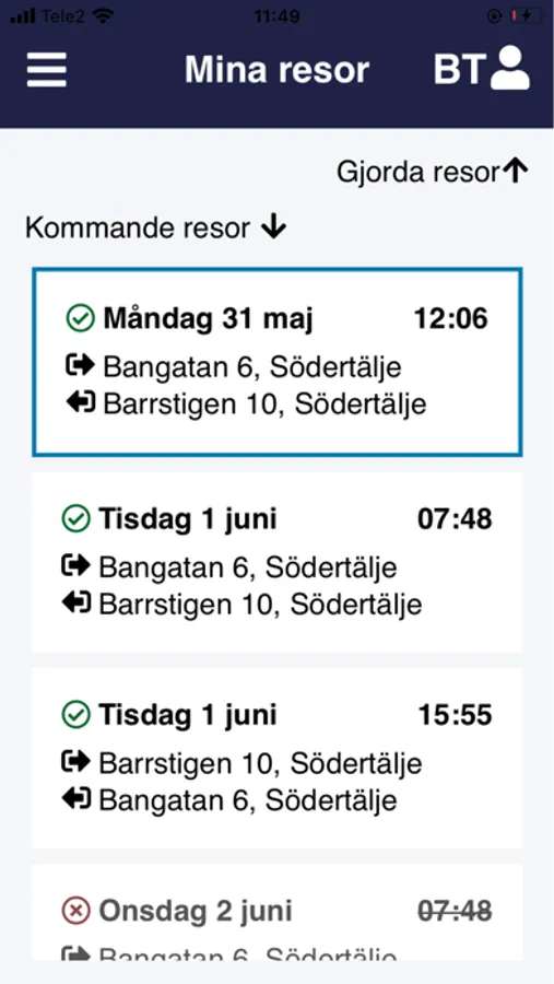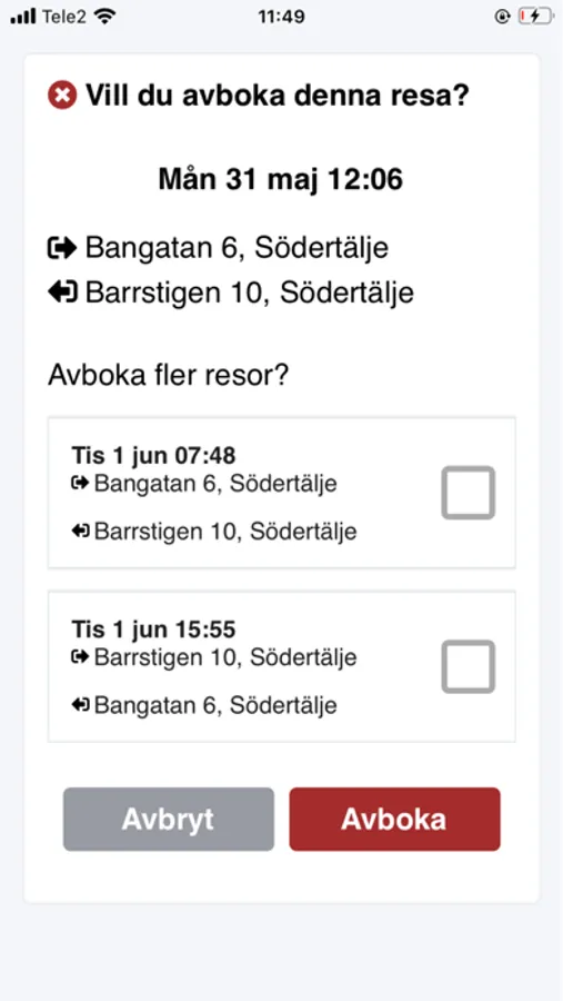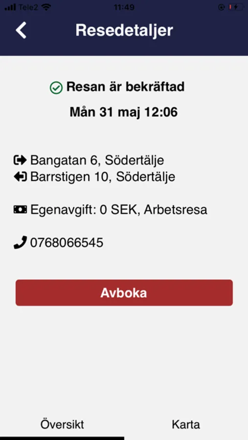 Resenärsappen för serviceresor med Södertälje Taxi.