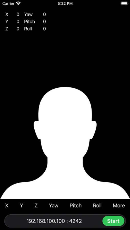 3. Click 192.168.100.100 : 4242 next to the Start button and enter IP address and Port number from Opentrack/PC (Windows) Setup.