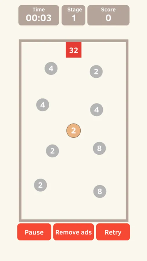 Match the numbers to the one red square target on the stage and hit it to clear the stage.