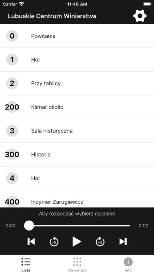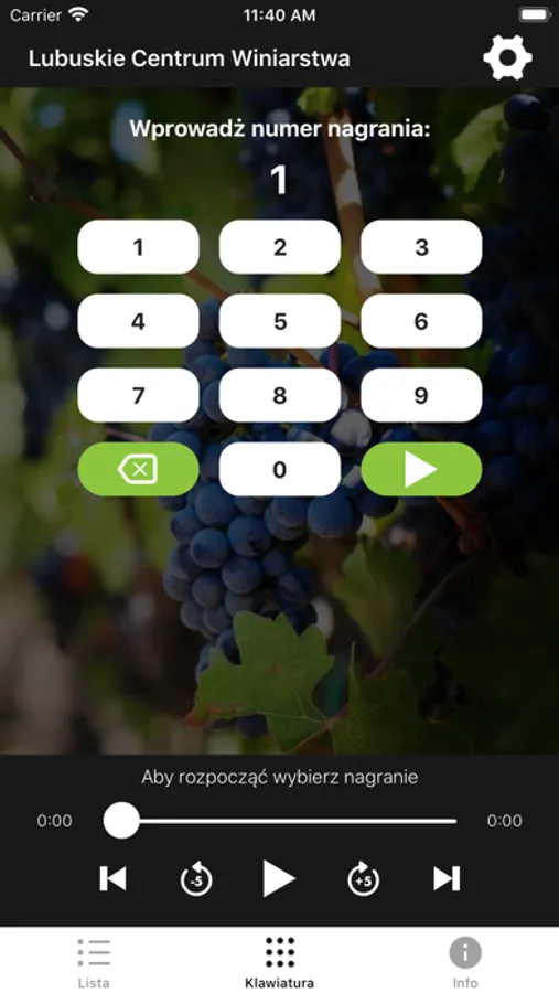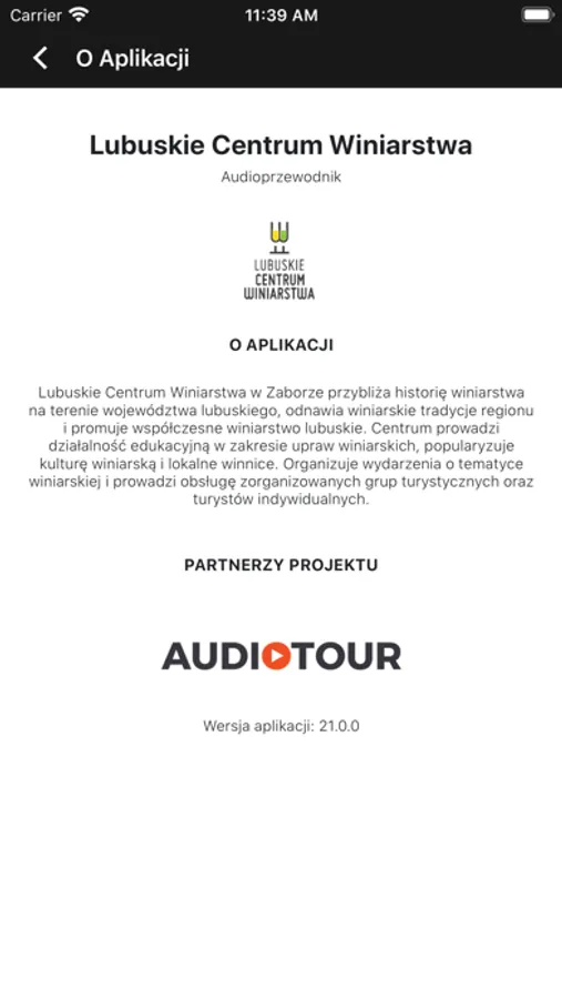 Aplikacja jest formą audioprzewodnika pozwalającego na zwiedzanie Lubuskiego Centrum Winiarstwa za pomocą urządzeń mobilnych.