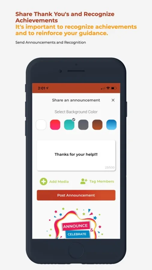 Recognize achievements and make announcement or just send positive inspiration and energy using our Announcement - and do it in Audio or Video so your clients can feel your energy and sincerity.