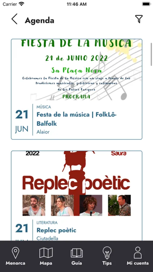 Conoce los eventos que se celebran en la isla. Selecciona las fechas y el tipo de evento