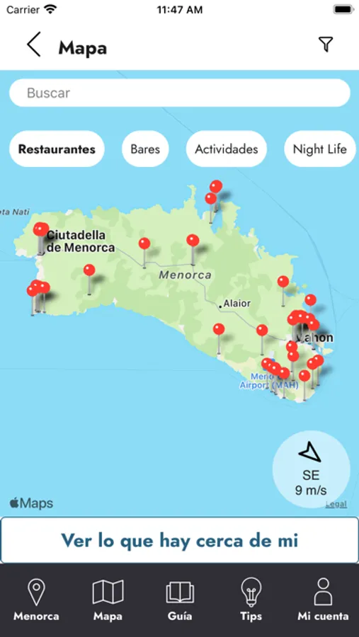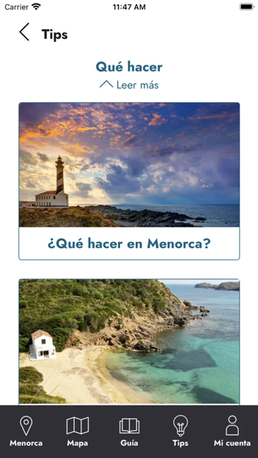 interesar de cada uno de los municipios de Menorca y otros sitios de interés.