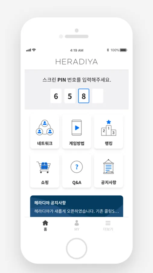 콜링골프 앱에서 "새 게임 연결하기"를 누르시고, 게임기 화면에 보이는 PIN번호를 입력하세요. 그러면, 게임기의 점수가 헤라디야 앱에서 관리가 됩니다.