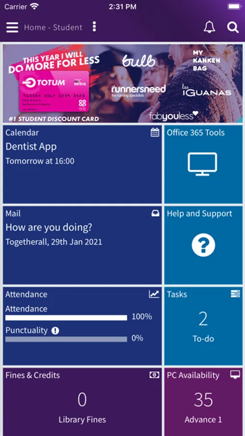 Access your timetable, find an available PC, check your progress and access loads more functions helping you to stay in control of your learning.