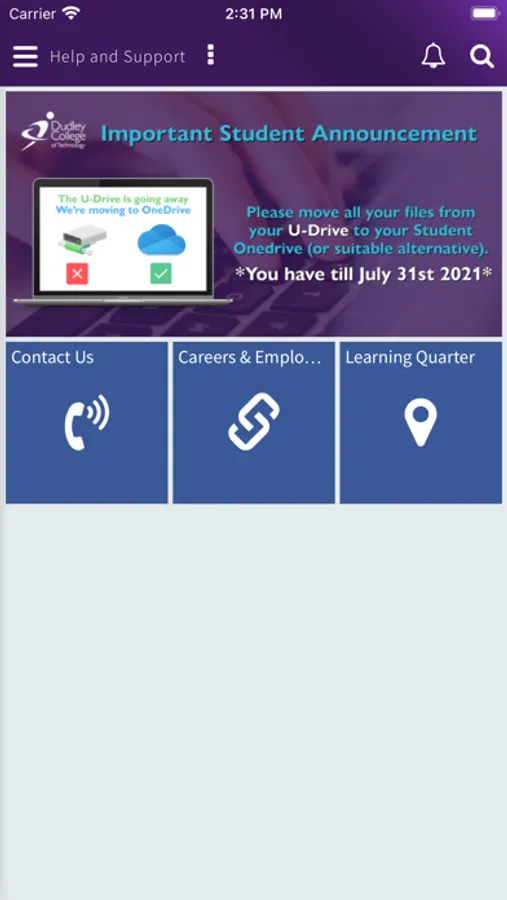 The MyDudleyCollege app provides an easy-to-use, personalised system for you to manage everything you need whilst studying. Giving you access to all key services in one place and with notifications, so you'll always be up to date with the latest news and information.