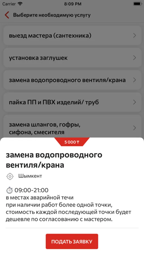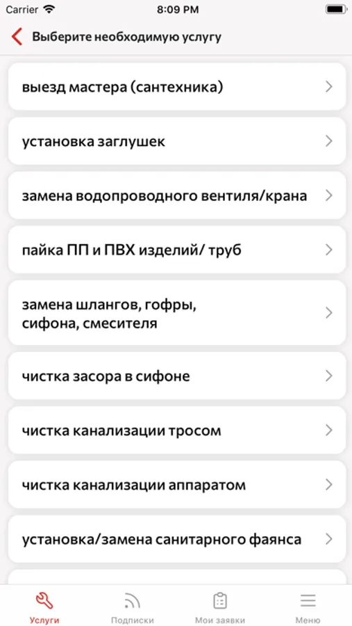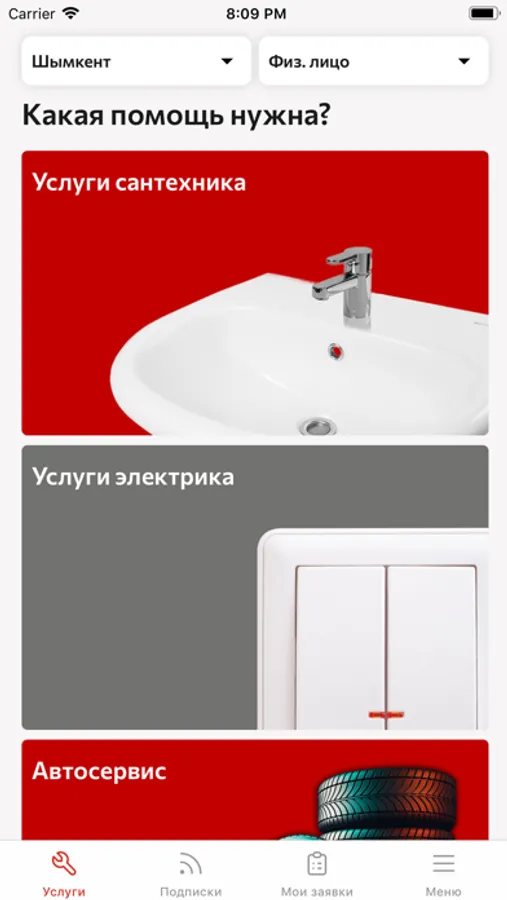 В приложении Вы можете оформить заявки по устранению аварий в коммунальных системах и экстренных проблем с Вашим автомобилем.