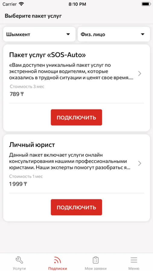 Также в приложении можно оформить подписку на пакеты услуг. Это позволит не переплачивать и быть спокойным, что при возникновении проблемы она будет быстро устранена.