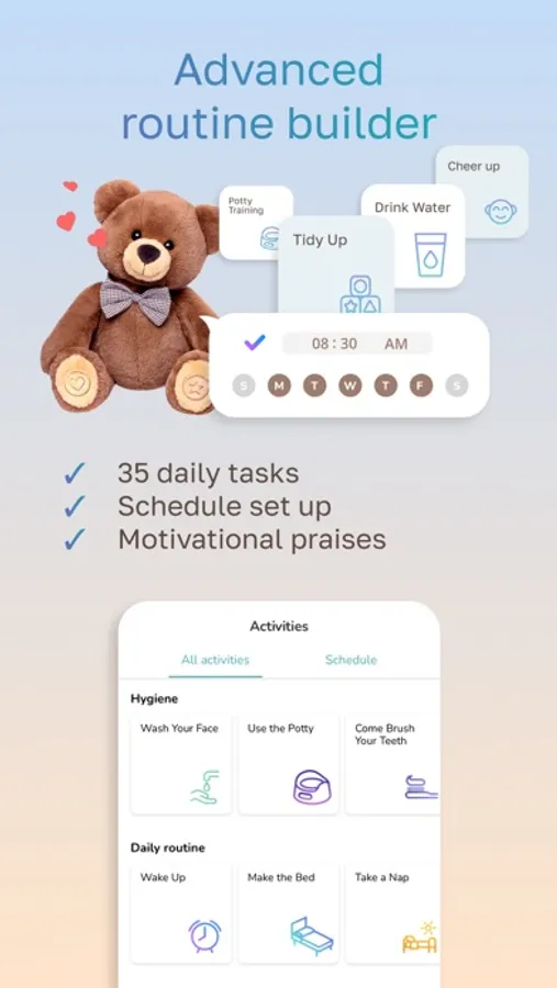 Control Smart Teddy with our app, and discover activities for hygiene, daily routine, mindfulness, and more!