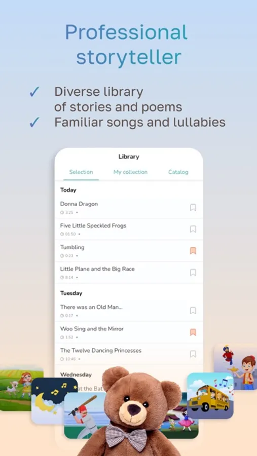 Smart Teddy is a great storyteller for bedtime, with lullabies, songs, and poems. It helps develop your child's skills and turn learning into a fun game.