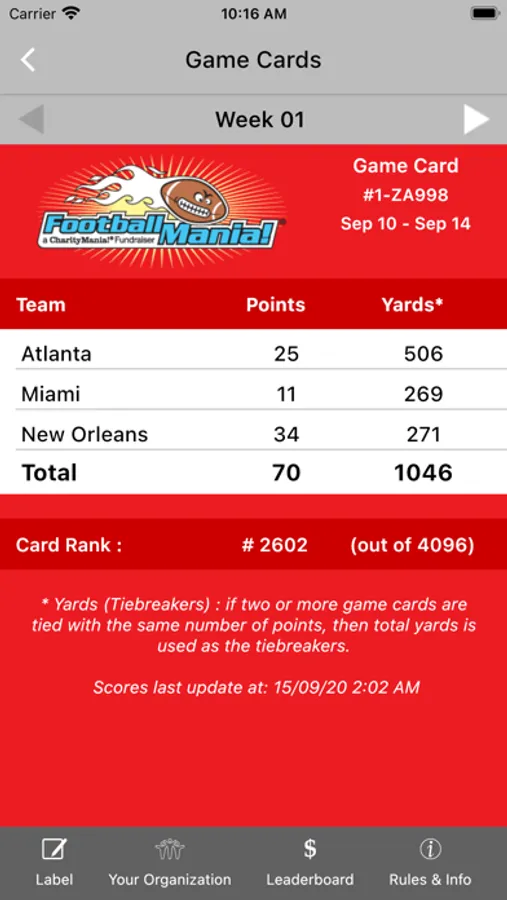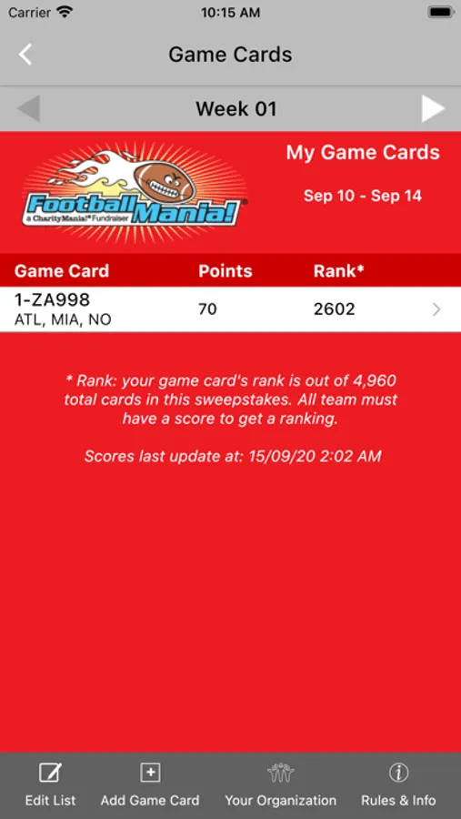This app is for FootballMania game card holders only. Experience the excitement of your FootballMania fundraiser now on your iPhone! If you have a FootballMania game card, you can now track your ticket’s teams directly on your iPhone (rather than just on the CharityMania website). You’ll know right away how many points your teams have scored, how well your ticket is doing in the contest, and whether or not you are a winner! This free app is the most fun and convenient way to experience your FootballMania fundraiser.