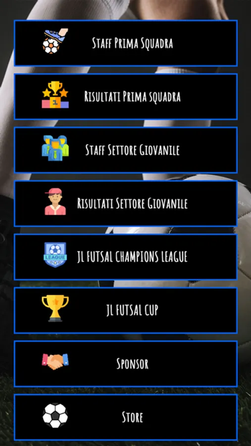 Inoltre ci sono i risultati del nostro campionato amatoriale calcio a 5 e della nostra coppa ( la JL Futsal Champions League e la JL Futsal Cup ) , i nostri sponsor e il nostro Store .