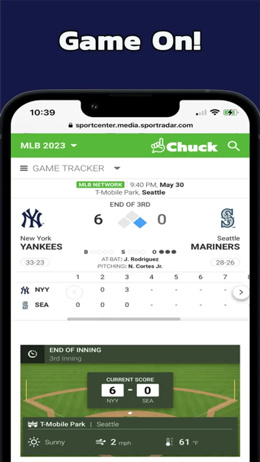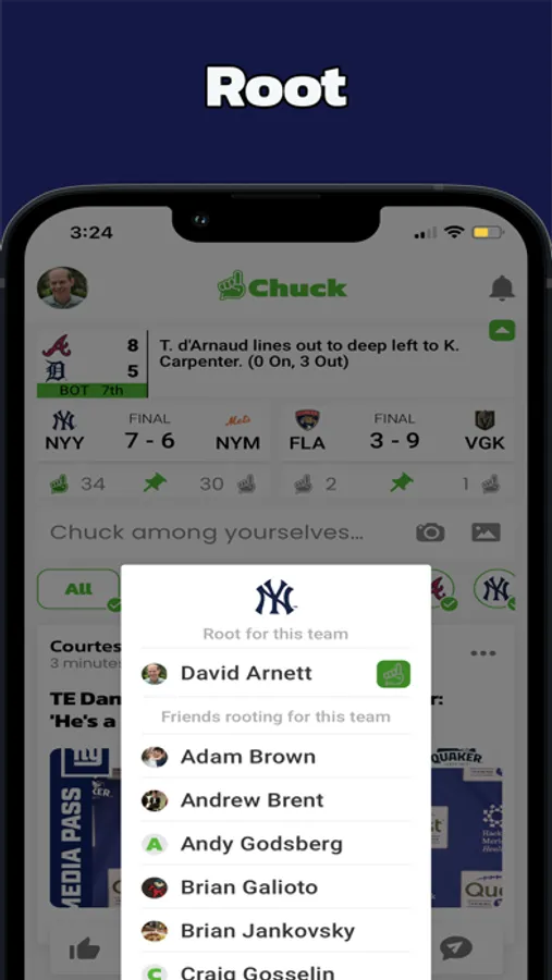 Chuck combines everything that’s happening in the sports world—scores, news, updates and more—with the banter of your text threads, tailgate or table.