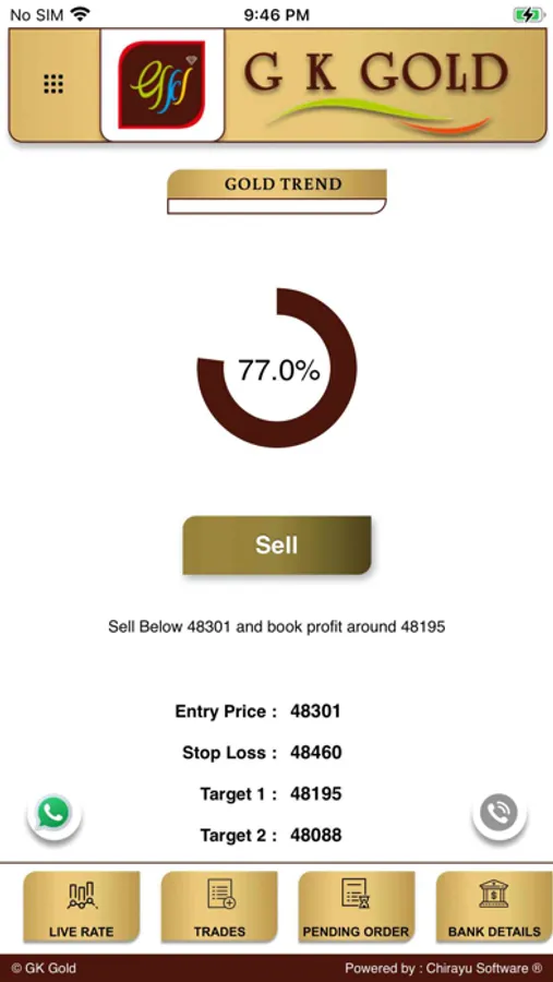 The app has a special feature of predicting GOLD TREND using various analysis tools.