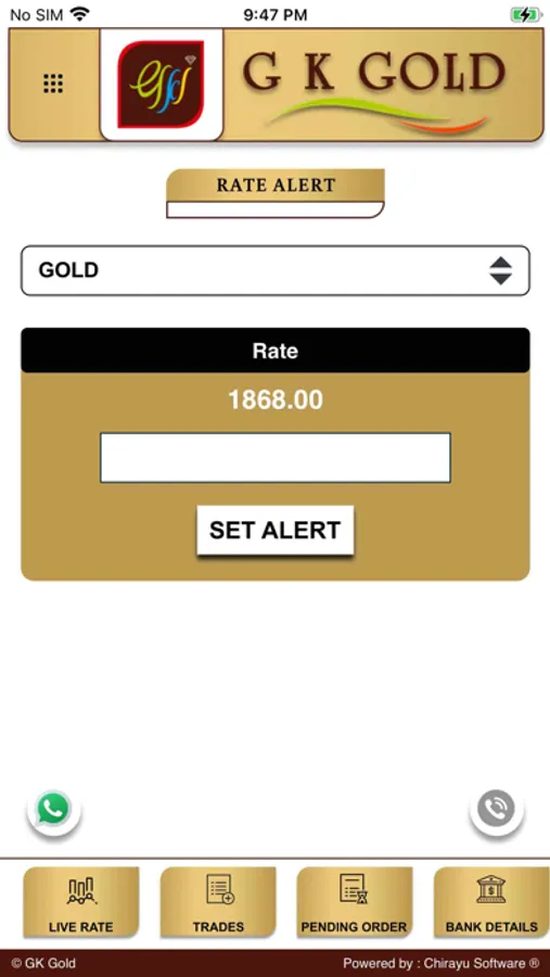 It also has the RATE ALERT facility to set the alerts at a specific price and receive a notification when the market price reaches the specified price level.