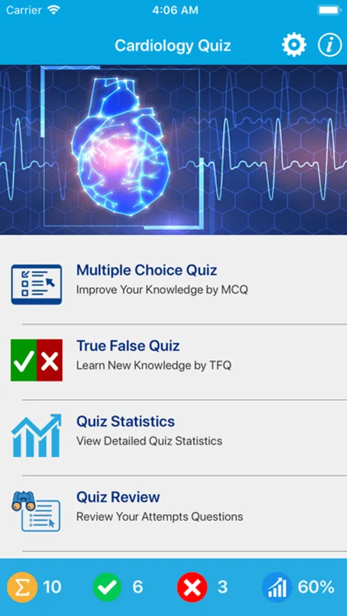 Test and improve your information answering questions and learn new knowledge about cardiology by our app.