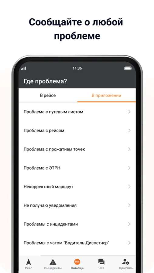 Сообщите о проблеме в рейсе, запрос зарегистрирует система автоматически.