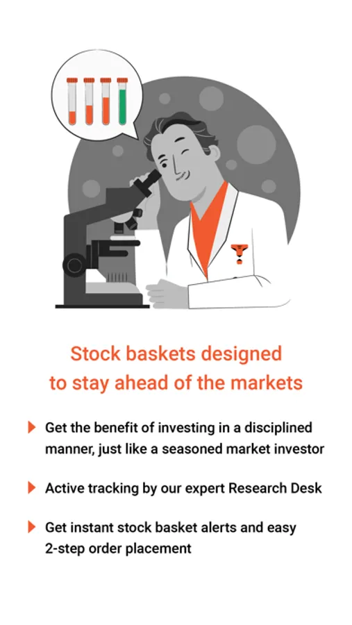Simple to use, easy to follow! The InvesTiger app is where you can get Sharekhan’s 22+ year Research expertise to work to optimise returns on your equity investments. Choose from among various professionally selected and actively tracked stock baskets curated to stay ahead of the markets. With InvesTiger, you get decades of experience, truly delivered!