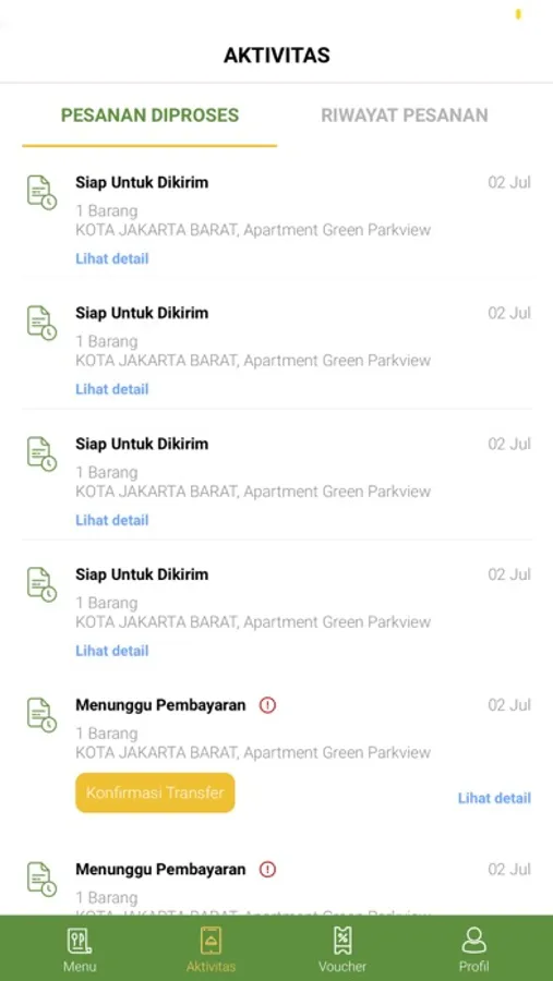 Pengen tau kamu udah beli apa aja? Atau mau order ulang? Cek aja di fitur riwayat pembelian kamu!
