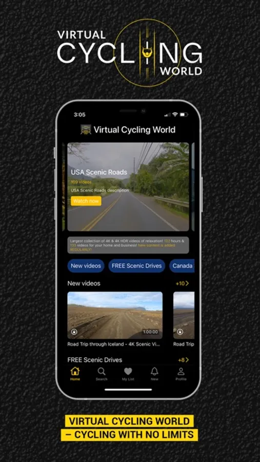 - Stream more than 140 of cycling scenery videos. New content is added REGULARLY