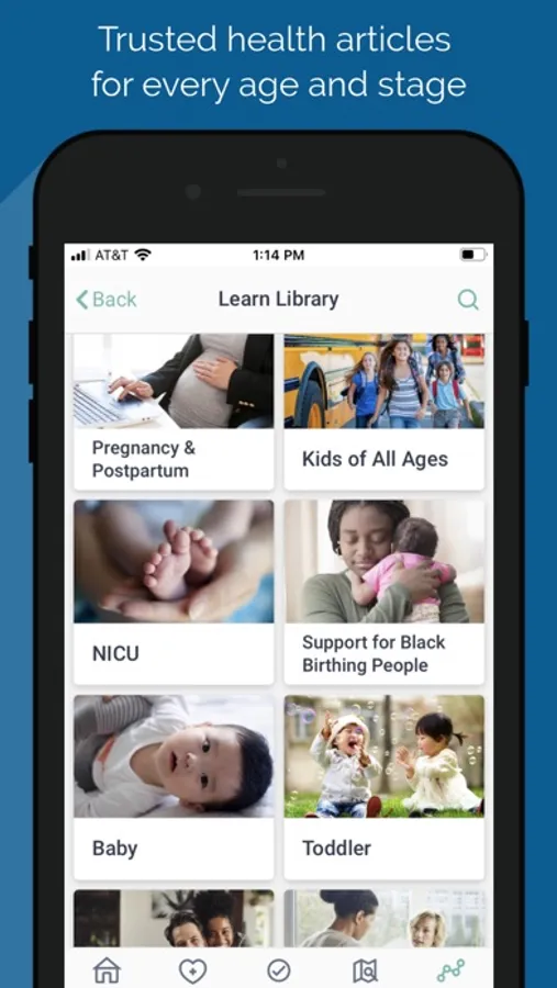 • Evidence-based articles and videos on prenatal and postpartum care, milestones, labor and birth, breastfeeding, newborn care and adult wellness