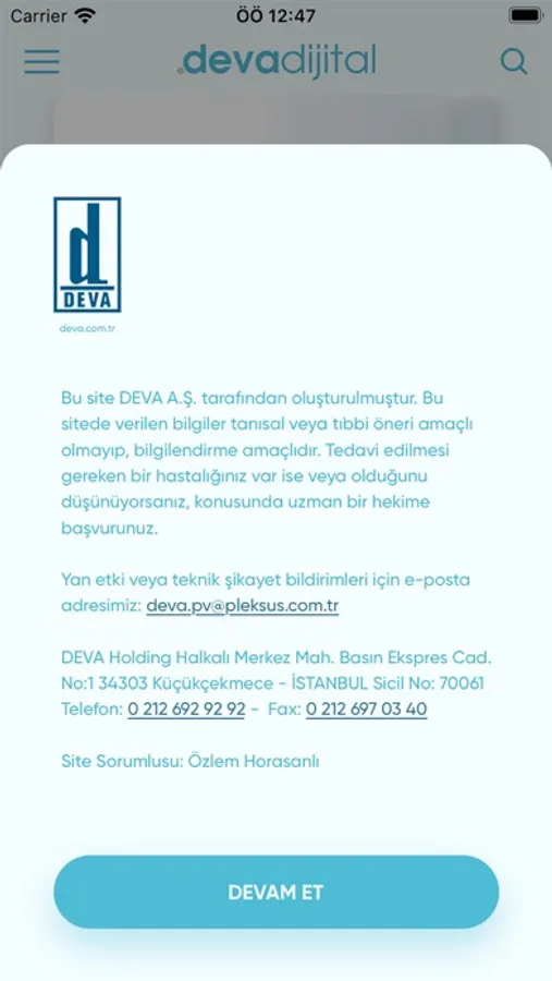DEVA tarafından oluşturulan devadijital mobil uygulaması, sağlık profesyonellerinin ücretsiz üye olarak giriş yapabileceğiz bir medikal bilgilendirme platformudur.