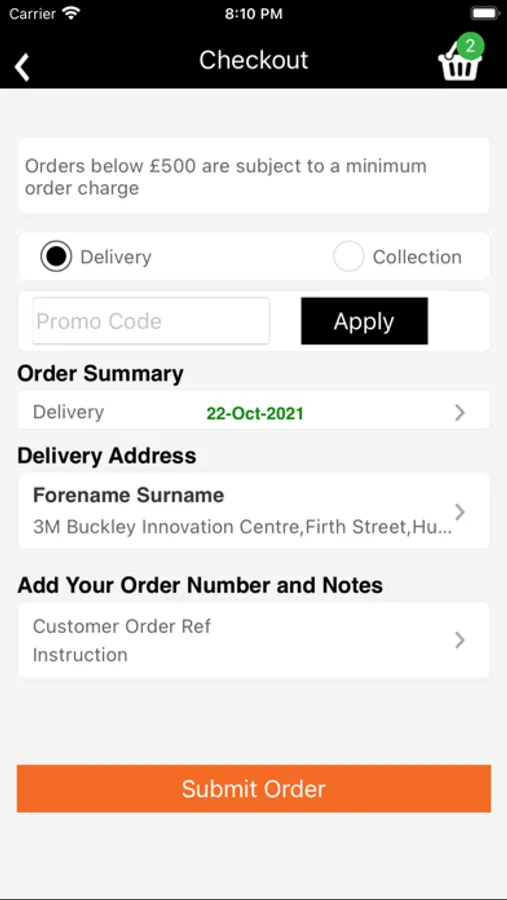 4) Place your order, then click and submit (partial orders can also be saved in the cloud to finish at a later date, on any compatible device)