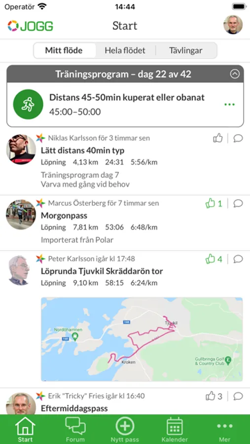 Jogg är Sveriges största sajt för träning på alla nivåer, från nybörjare och vardagsmotionärer till elit. Med vår app kan du mäta dina träningsrundor och lägga in direkt i din egen träningsdagbok, med möjlighet att sätta upp mål på kort och lång sikt. Du får en tydlig överblick av din träning per dag, vecka och månad. Dina träningskompisars träning ser du direkt på startsidan och kan gilla och kommentera. Du kan även diskutera allt om träning på vårt aktiva diskussionsforum. På jogg.se kan du analysera din träning mer i detalj och hittar även kartverktyg, vår prisade löparkalkylator och mycket mer. Allt helt gratis. Nu går det även att följa de träningsprogram som du köper på MittLopp i appen.