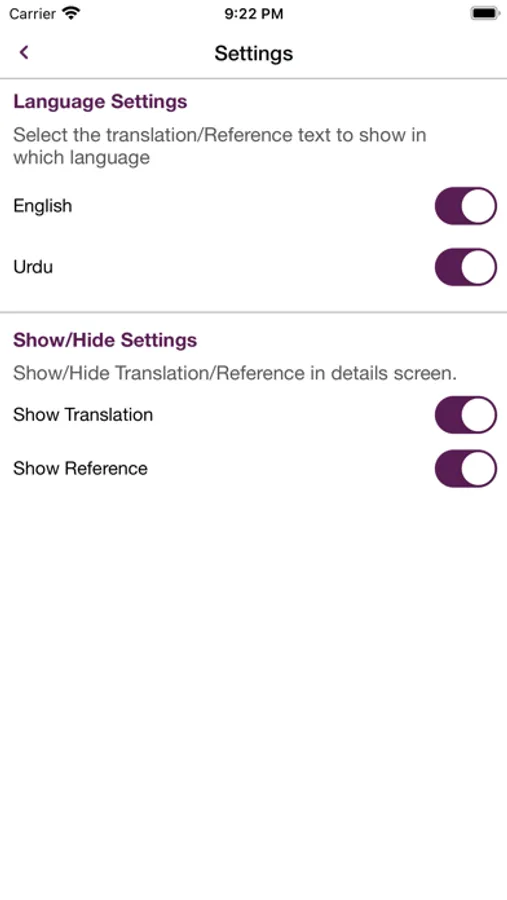 Languages :-Translation: Includes the English & Urdu translation of all Azkar and Quranic verses (Quranic verses based on Sahih International translation).