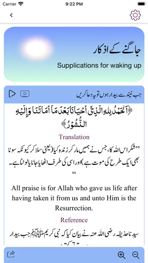 Sonay Jagnay kay Azkar application is based on Quranic verses and Saheeh & Hasan Ahadith.