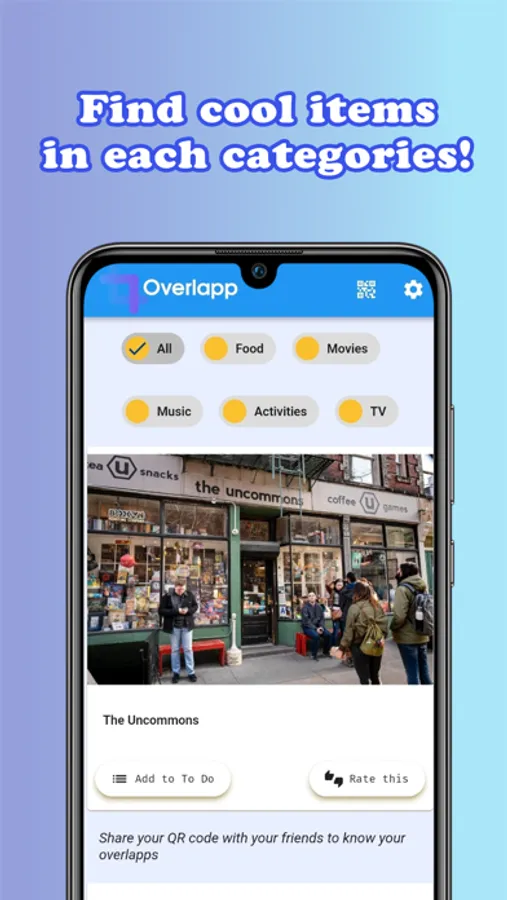 + Share and invite your friends to find more things to do together with your QR code. The more people you add, the better the experience!